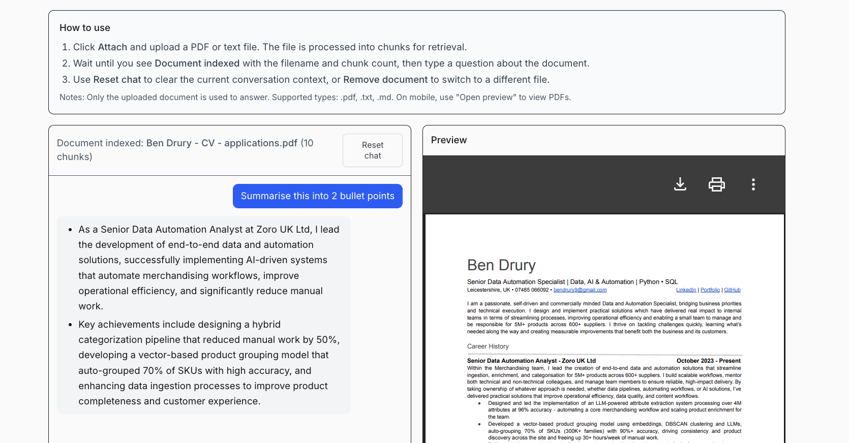 Upload a PDF or text and chat with it using a FastAPI LangChain backend and FAISS vector store retrieval with OpenAI embeddings. Chat history stored via a NoSQL database (Firestore via Google Cloud).